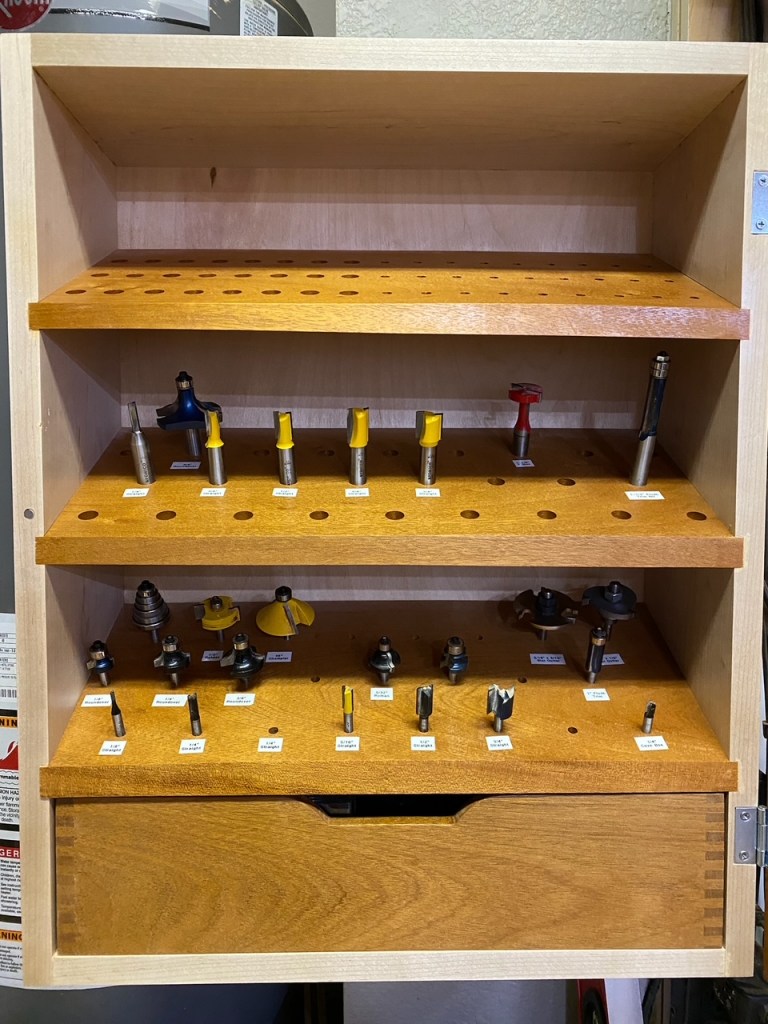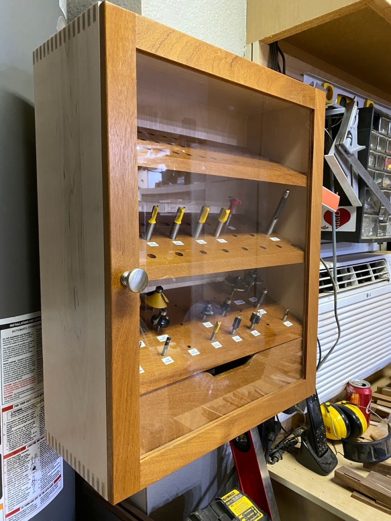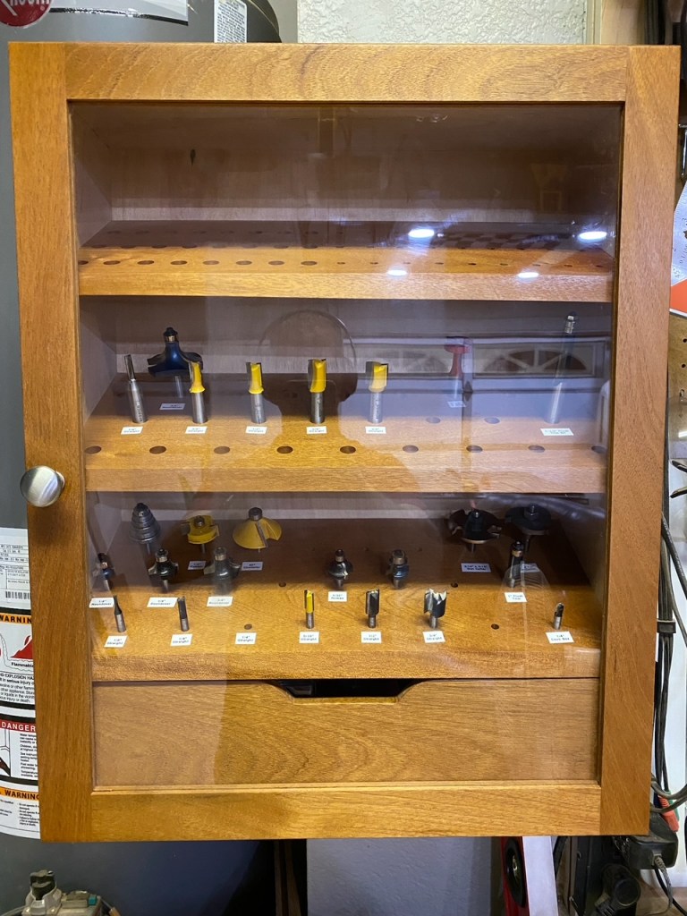 Mahogany drill bit case with magnetic latching door