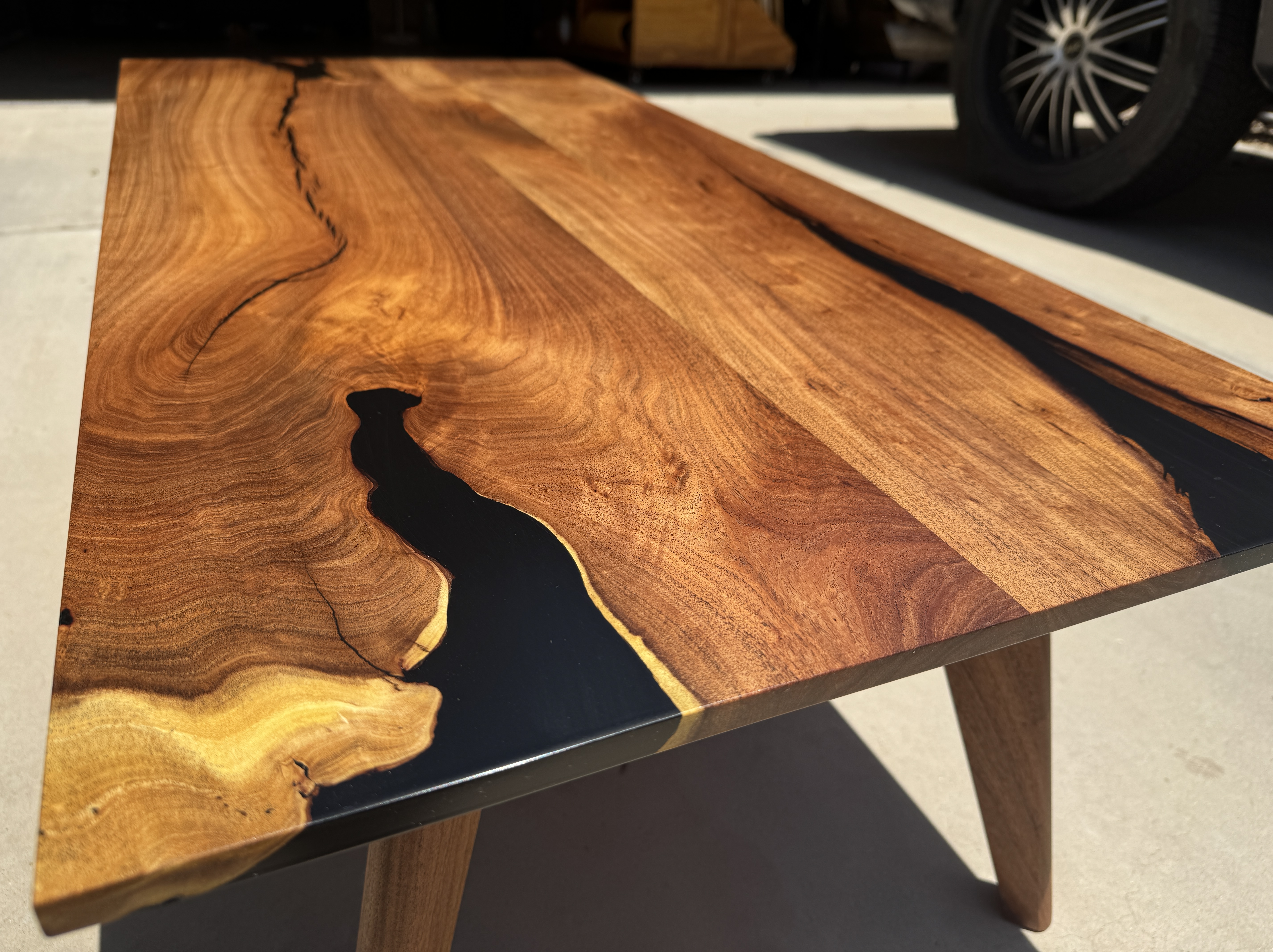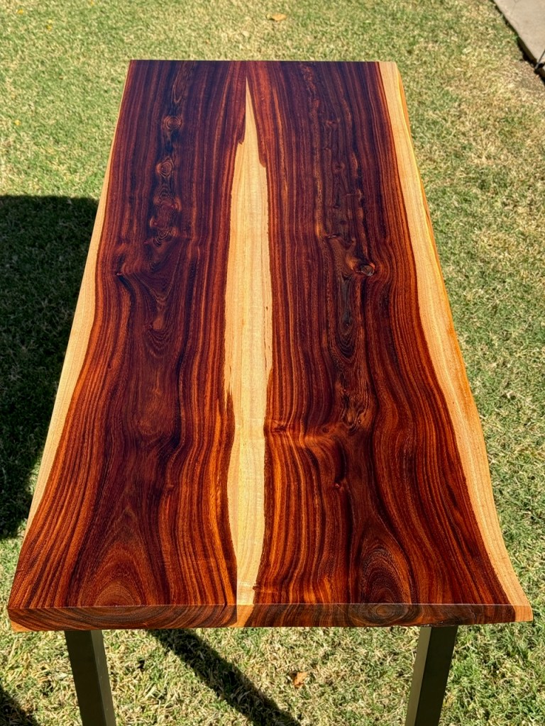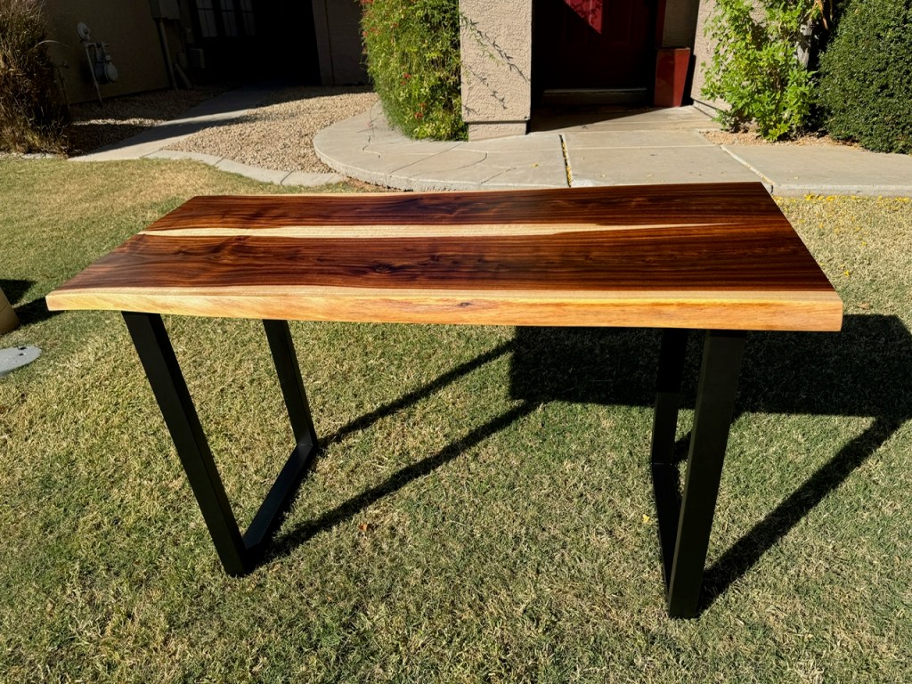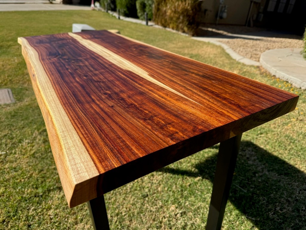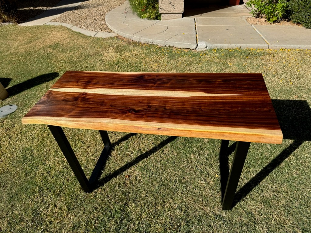 MCM Coffee table made from mesquite and utilizing Foureyes Furniture’s design. This was made for some friends that moved out of state and needed a reminder of their time in the desert (mesquite wood that I cut down and milled myself). Also, they have both served our country and deserved a thank you on this Memorial Day.