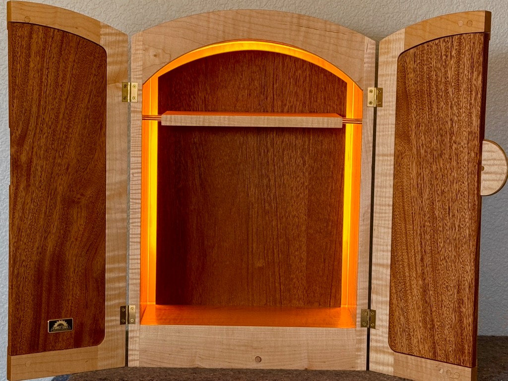 Curly Maple and African Mahogany Whiskey Cabinet