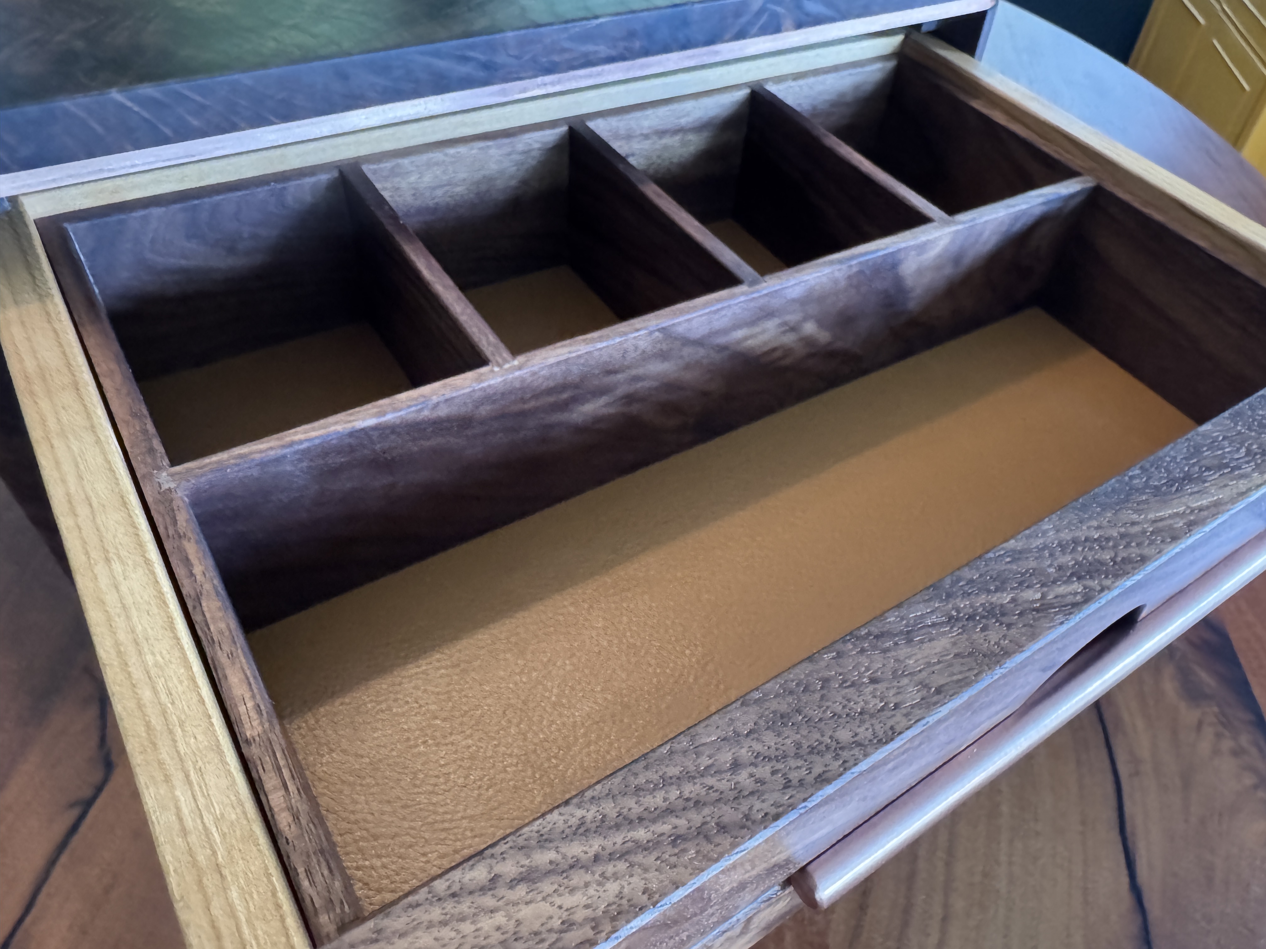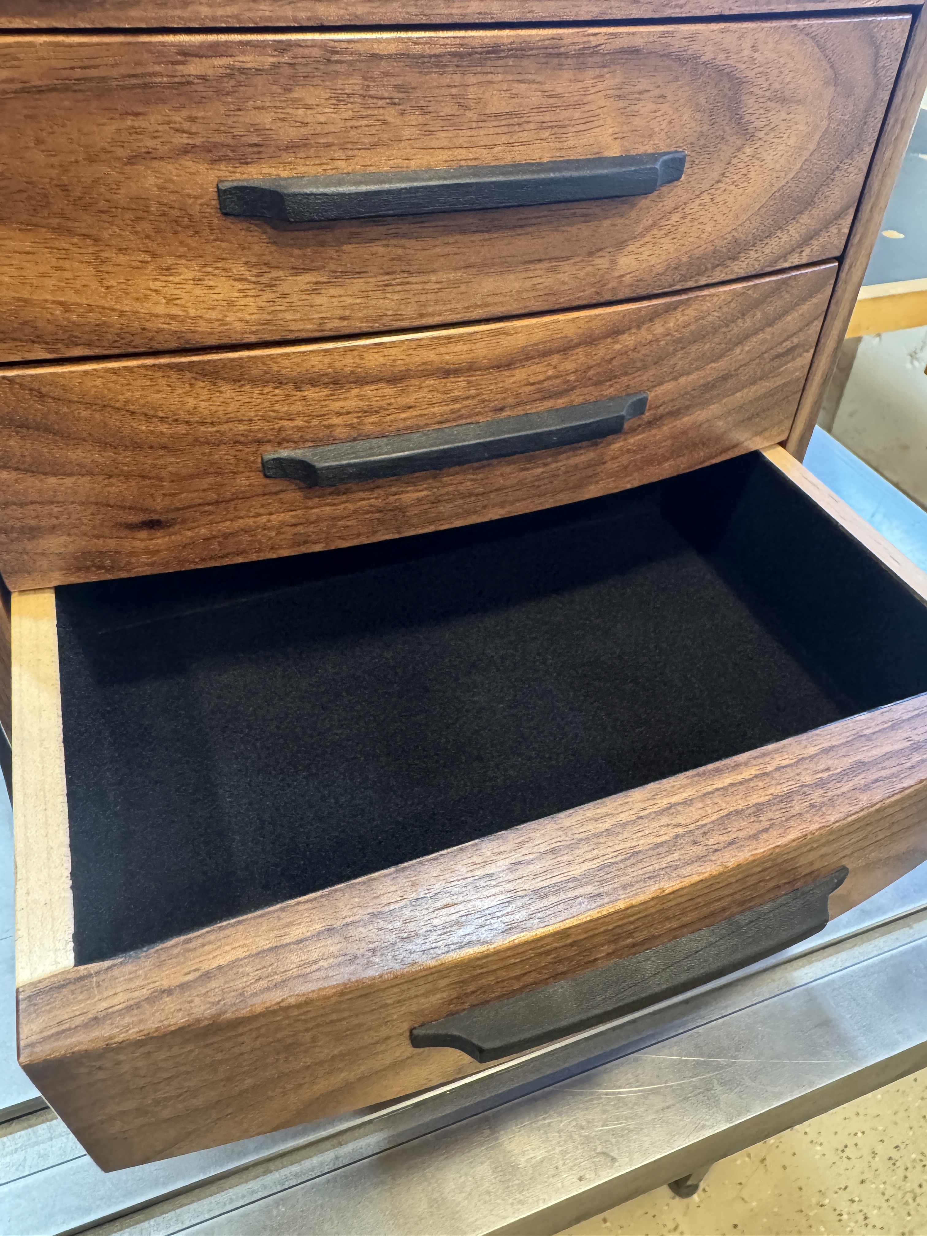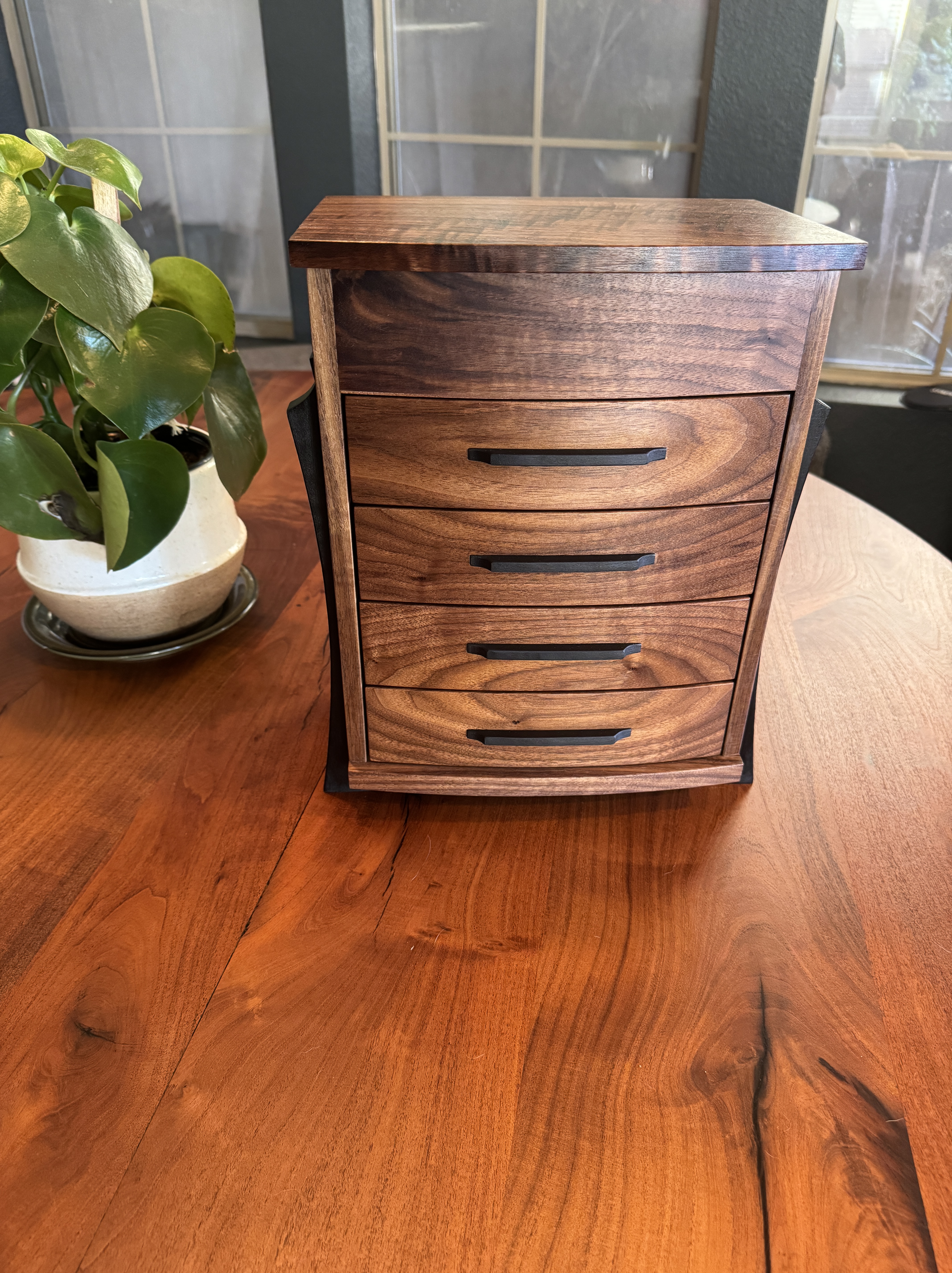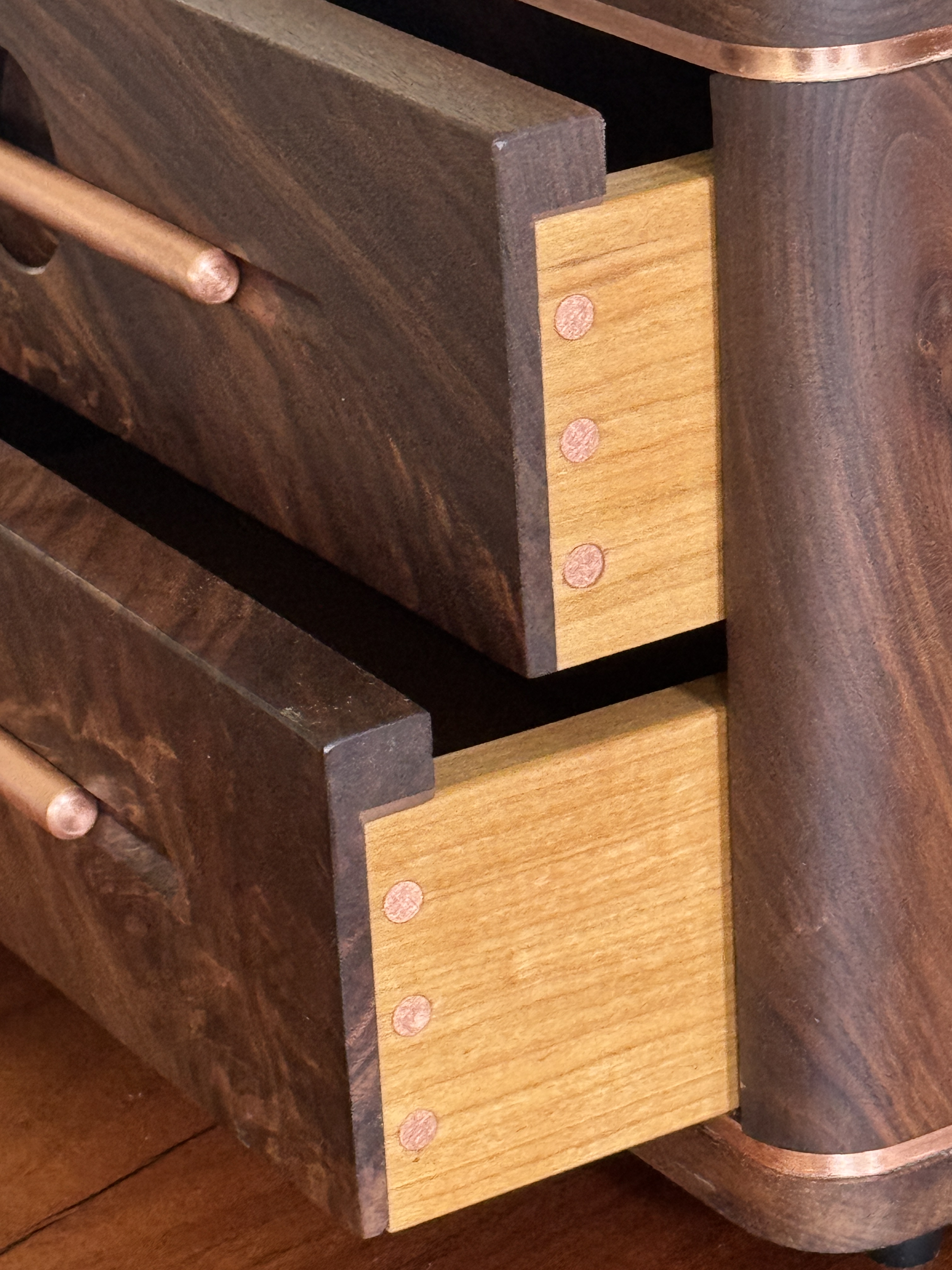 I decided to build something for my son, just because. As I was building this he passed a big test to obtain a license that will further his career. I am so proud of him! I did my best to completely copy an incredible builder, #pedullastudio , in making this box. The only real difference is that I lined the drawers with leather. The case is #walnut with copper accents. #customade#woodworking #rubiomonocoat #maker